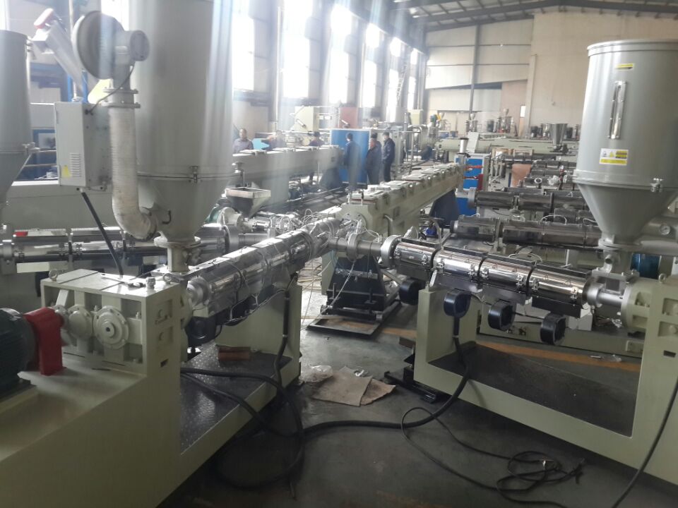 該設備可以由一臺擠出機擠和個色標機生產,也可以由三個擠出機擠出三層(中間層為玻璃纖維增強);或者四層PPR玻纖增強管等。