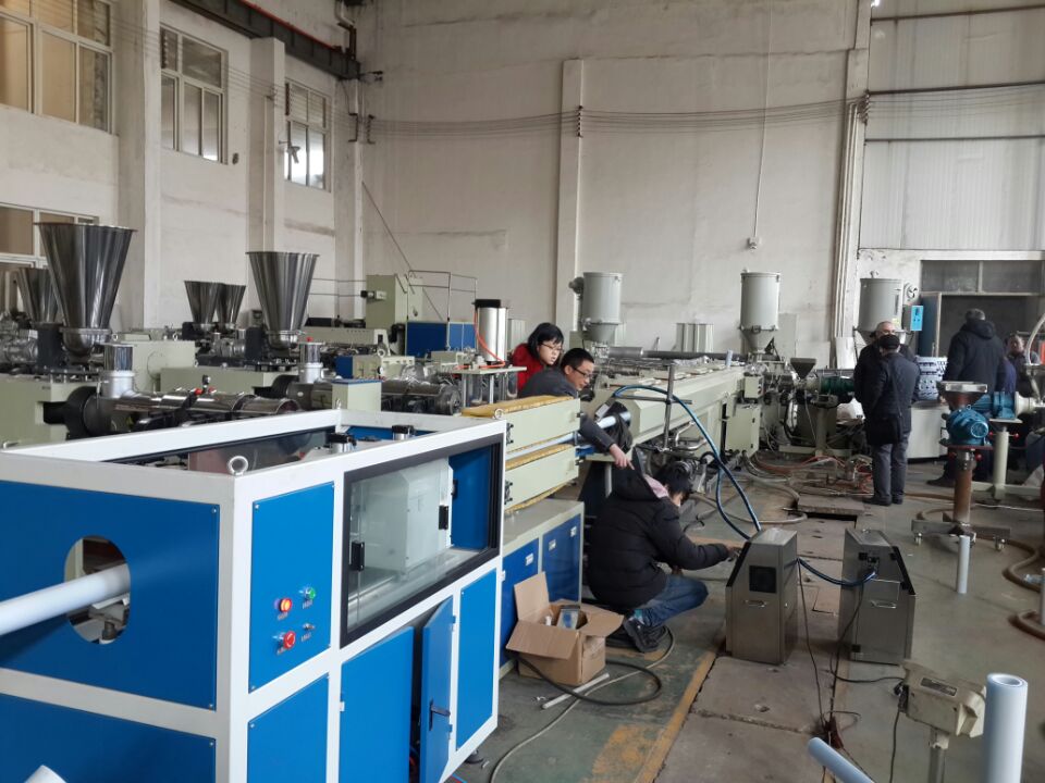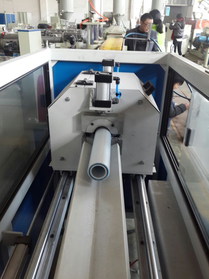 PPR管機/塑料制管機用于生產房屋使用的冷熱水PPR管材。它由真空料機,料斗干燥機,單螺桿擠出機,模具,共擠色標機,真空校準和冷卻罐,擴展噴霧冷卻箱,牽引機,打印機,切割和堆疊支架。三層PPR纖維增強管,專有另一個擠出機進行中間纖維層擠出。