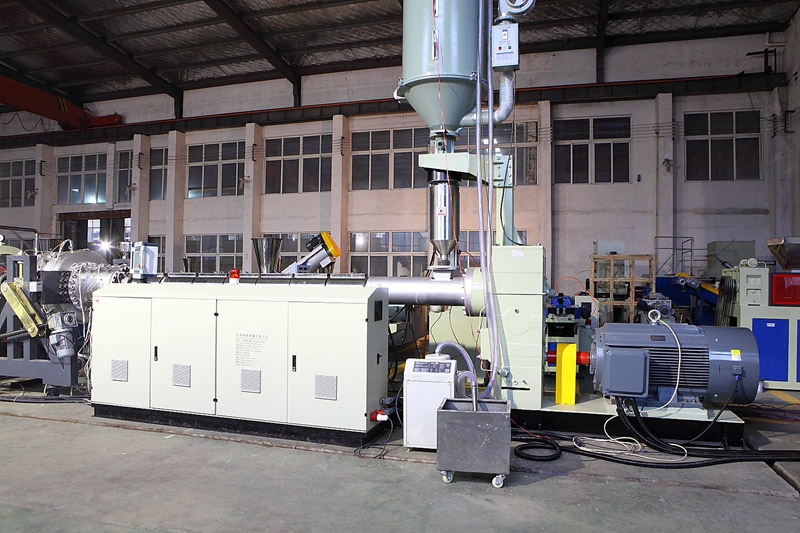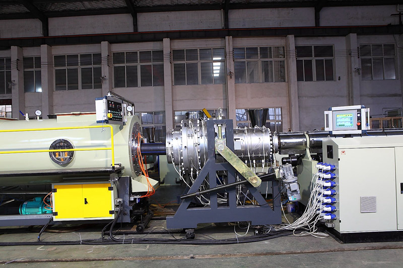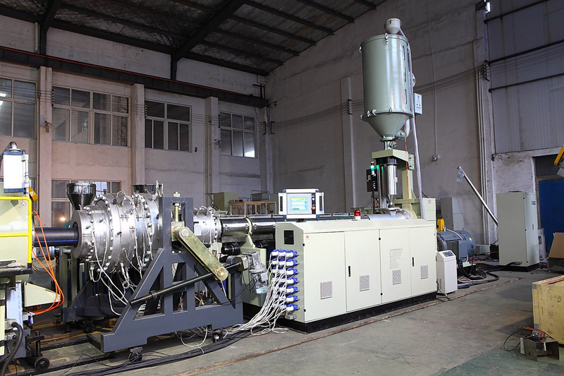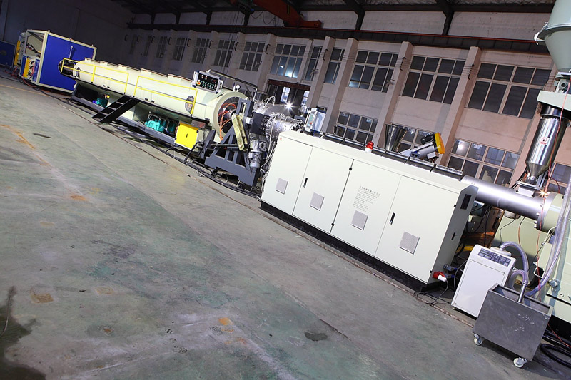 1.生產(chǎn)線選用本公司專用HDPE、PP管材的擠出機(jī),螺桿采用帶屏障和混煉頭結(jié)構(gòu),機(jī)筒采用開槽機(jī)筒,塑化和混煉小果好,擠出量大而且非常穩(wěn)定。