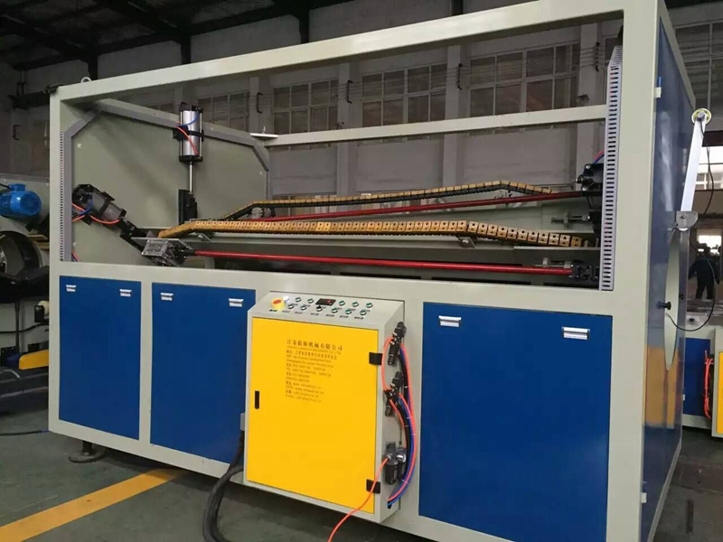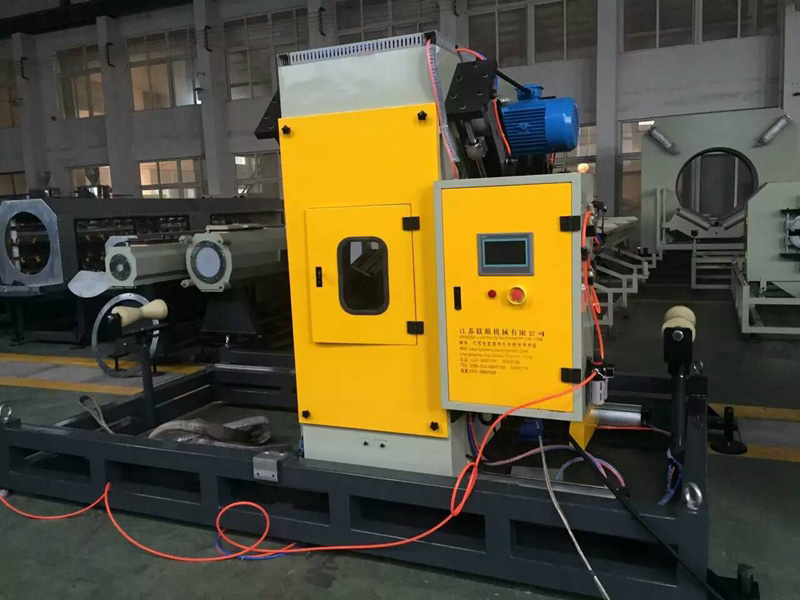5.牽引機(jī)可根據(jù)管材的尺寸進(jìn)行選擇,六爪牽引機(jī)調(diào)速系統(tǒng)運(yùn)行穩(wěn)定可靠,切割機(jī)是無屑切割,電腦控制,自動化程度高,終身維修。聯(lián)順機(jī)械依據(jù)十幾年的生產(chǎn)經(jīng)驗(yàn),制作出的管徑范圍為315-630mm的PE管材擠出生產(chǎn)線廣泛應(yīng)用于城市燃?xì)夤芎徒o水管。